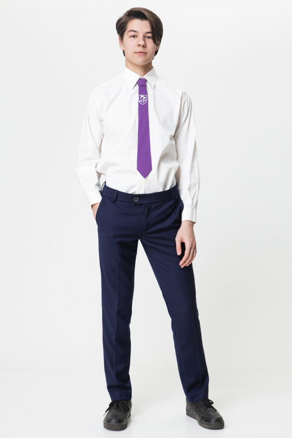 Платье для девочки из трикотажного вискозного полотна. Силуэт платья полуприлегающий, длинна изделия до колен. Рукава длинные, закрывающие запястья, втачные, одношевные. Низ рукавов обработан манжетами. Горловина имеет круглый вырез. Так же горловина обработана декоративным довязом, который добавляет строгому платью нотку игривости. Базовое платье из мягкой, натуральной ткани, не стесняющее движения станет идеальным решением для школьных будней.