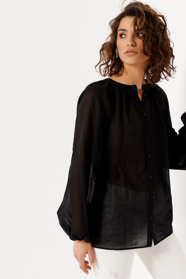 36 (146 см)Блузка: Длина изделия - 56см, Длина рукава - 12см, Обхват шеи - 38см, Ширина плеча - 9.5см, Ширина по груди - 42см, Ширина по низу - 44см, Ширина рукава - 15см;