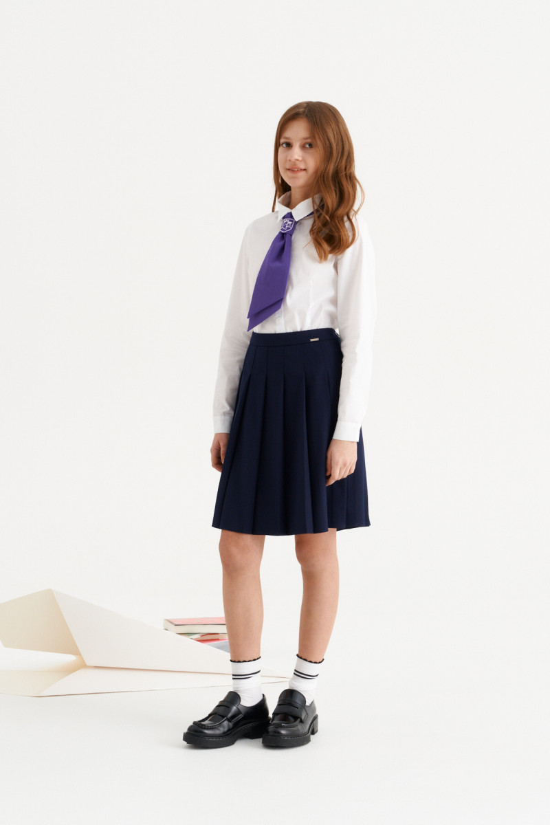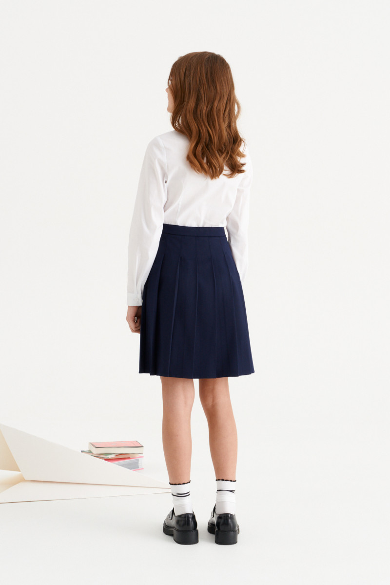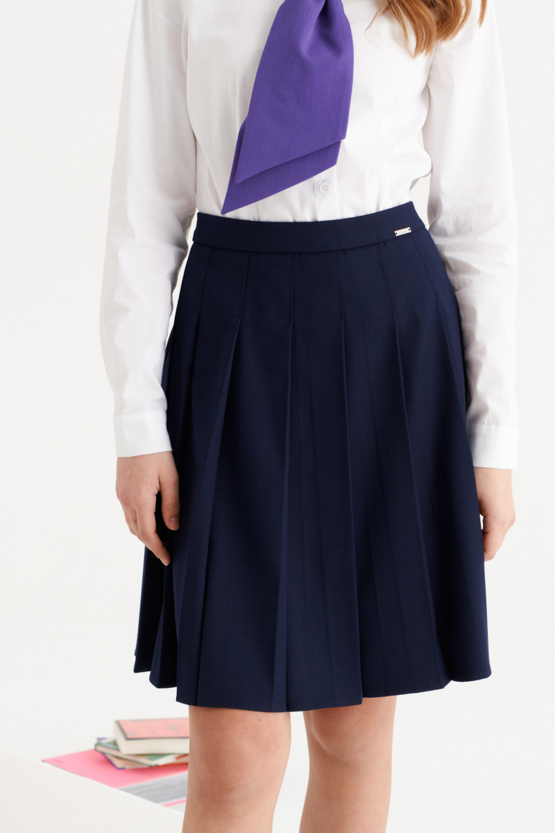 Это модная и стильная юбка для девочки, выполненная из легкой и приятной на ощупь поливискозной ткани. Модель обладает расширенным силуэтом, что создает универсальный и комфортный образ, идеально подходящий для школьных дней и активных прогулок. Юбка не имеет подкладки, что делает ее еще более легкой и удобной. Верхний срез обработан притачным поясом с застежкой на одну обметанную петлю и пуговицу, а также оснащена потайной молнией для аккуратной посадки. В задней части пояса встроена резинка, которая позволяет легко регулировать посадку по фигуре и обеспечивает дополнительный комфорт. Юбка украшена мягкими складками, что добавляет ей элегантности и подчеркивает модный стиль. Такой вариант отлично подходит для школьных дней, помогая девочке выглядеть красиво, современно и чувствовать себя удобно весь день.