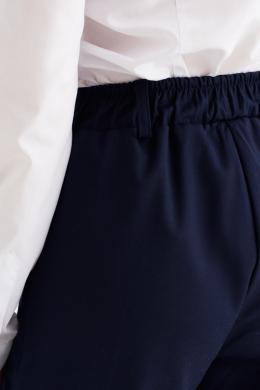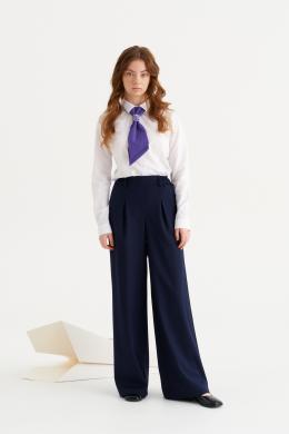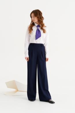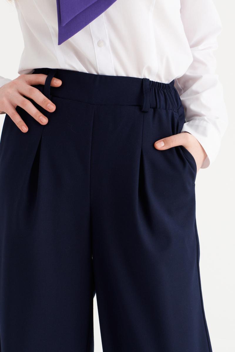 Брюки для девочек выполнены из практичной поливискозной ткани, благодаря чему они прекрасно держат форму и легко стираются, что особенно важно для школьной одежды. Верхний срез брюк обработан притачным поясом, внутрь которого вшита эластичная резинка, расположенная в боковой и задней частях для комфортной и надежной посадки. На поясе предусмотрены шлевки, позволяющие носить брюки с ремнем и дополнительно регулировать объём по талии. Передняя часть брюк украшена двумя элегантными защипами, которые придают изделию аккуратный внешний вид и обеспечивают свободу движений. В боковых швах располагаются удобные карманы с подкройным бочком, куда можно положить необходимые мелочи. Эти брюки идеально подходят для школы и повседневной носки – они удобны, долговечны и аккуратно выглядят на протяжении всего дня.