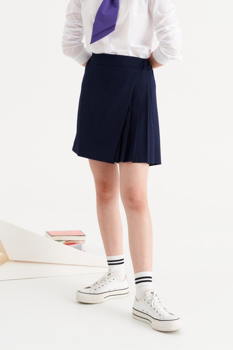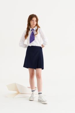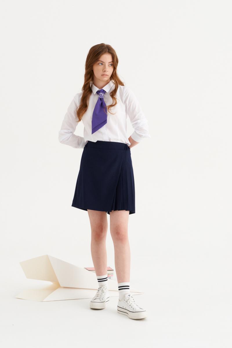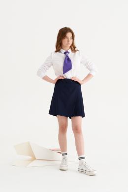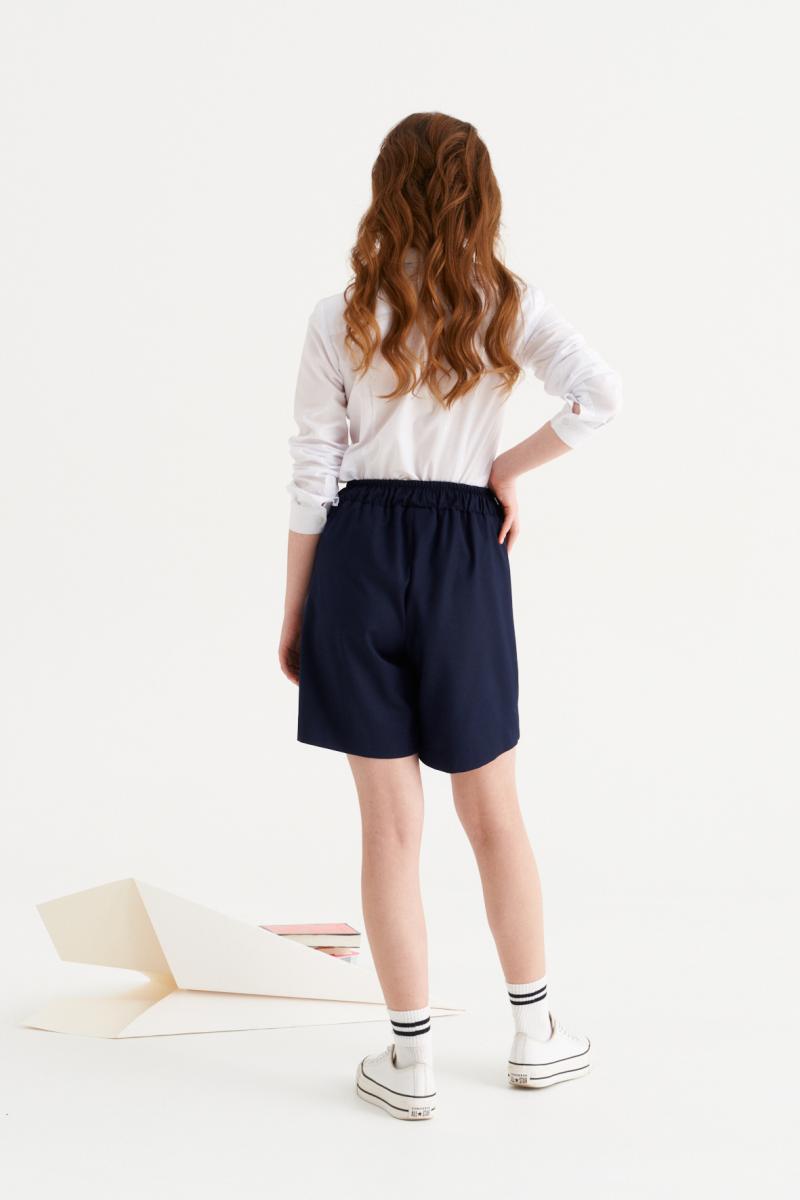 Это стильные шорты для девочки, идеально подходящие как для повседневной, так и для деловой носки. Они выполнены из мягкой и комфортной поливискозной ткани, которая сочетает в себе легкость и прочность. Модель отличается оригинальным дизайном с имитацией юбки, что придает образу нарядный и аккуратный вид. Верхний срез шорт аккуратно обработан притачным поясом с вставкой на резинке в задней части, что обеспечивает хорошую посадку и комфорт при носке. Передняя часть выполнена с аккуратными складками, а дополнительно дизайнерским акцентом служит отлетная деталь, которая имитирует юбку, обработанная на поливискозной подкладке. Такой стильный элемент добавляет модели элегантности и игривости в сочетании с удобством, делая эти шорты универсальным выбором для активных девочек, которым важно выглядеть красиво и чувствовать себя комфортно в любой ситуации.