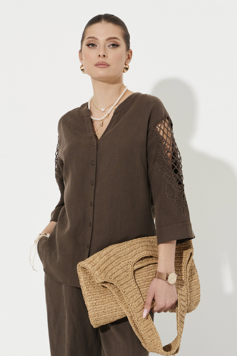 | 52 | Блузка: Длина изделия - 75см, Длина переда от высшей плечевой точки до низа - 69,5см, Длина рукава - 37,5см, Ширина плеча - 17см, Ширина по бедрам - 61,5см, Ширина по груди - 62,5см, Ширина рукава - 30см; |