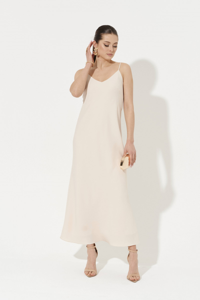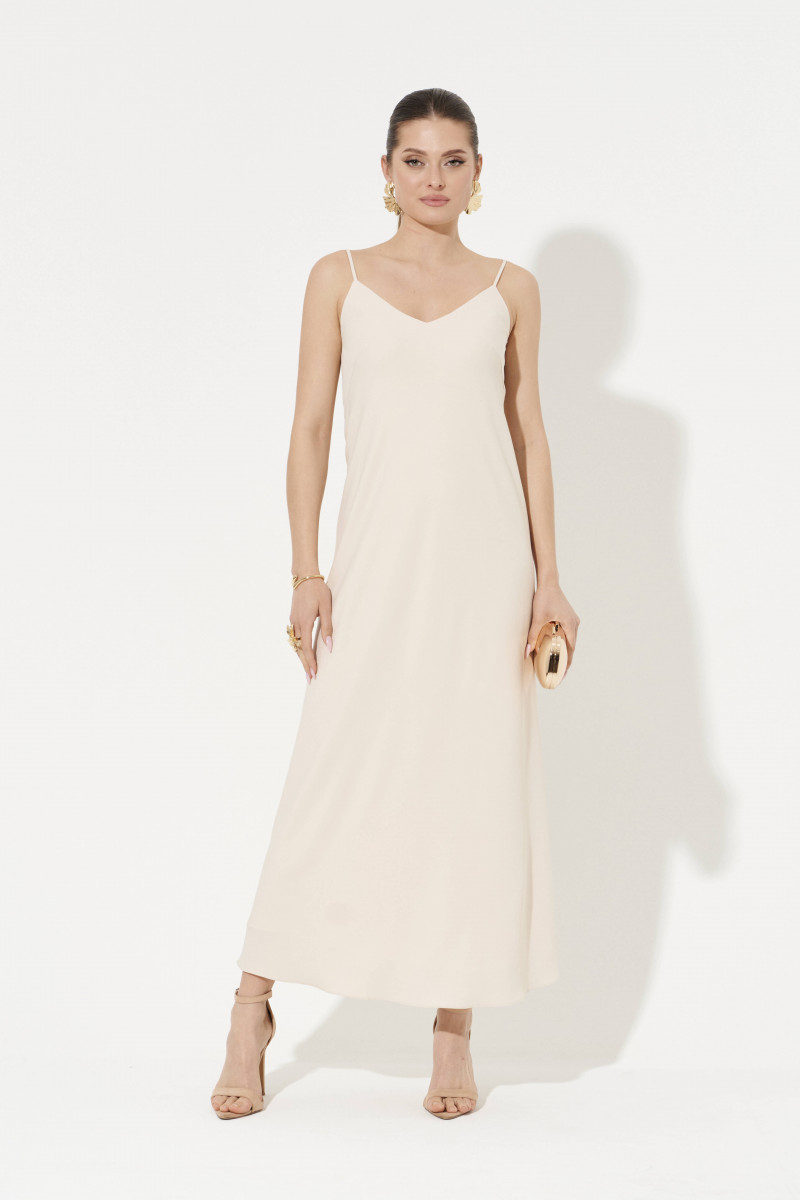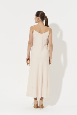 Платье женское из струящейся ткани прямого силуэта для повседневной носки. Платье чуть расширено к низу. Перед имеет две нагрудные вытачки. Горловина переда и спинки V-образная. Платье на бретелях. В бретели вставлена специальная тесьма, что не дает им возможность растягиваться. Платье на вискозной подкладке. Очень нежная и изящная модель платья, в данной модели вы обязательно будете выглядеть великолепно. А за счет натуральной подкладки вы сможете чувствовать себя комфортно.