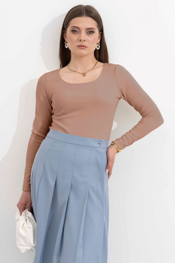 Блузка женская из атласной ткани для повседневной носки. Блузка чуть расширена к низу. По переду имеется две нагрудные вытачки. Горловина по переду и по спинке V-образная горловина. Блузка на подкладке, а также имеет регулирующие бретели. Подкладка из основной ткани. Очень элегантная и нежная блузка бежевого оттенка в которой вы будете сиять, за счет волшебного блеска блузки. Базовая блузка в вашем гардеробе.
