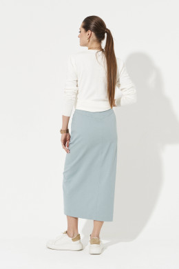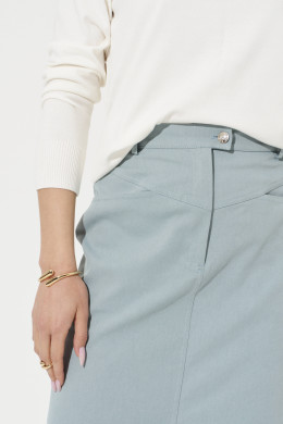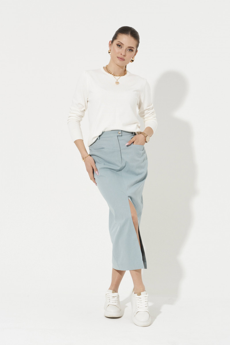 Юбка женская из смесовой ткани с большим содержание хлопка для повседневной носки. Юбка прямая. Верхний срез юбки обработан притачным поясом с застежкой на одну обметанную петлю и одну пуговицу, а также имеется застежка на тесьму-молнию в среднем шве юбки. Юбка имеет шлевки, что дает возможность носить ее под пояс, тем самым вы сможете регулировать облегание в области талии. Переднее полотнище юбки имеет отрезную кокетку, а также на переднем полотнище располагаются два кармана. Переднее полотнище со средним швом и разрезом в шве. Заднее полотнище юбки имеет отрезную кокетку. Очень стильная юбка бежевого оттенка, которая безусловно будет радовать вас своим чудесным видом и прекрасной посадкой.
