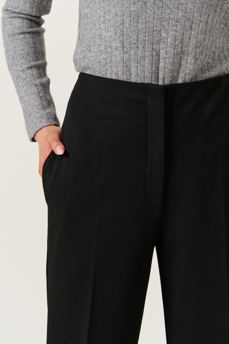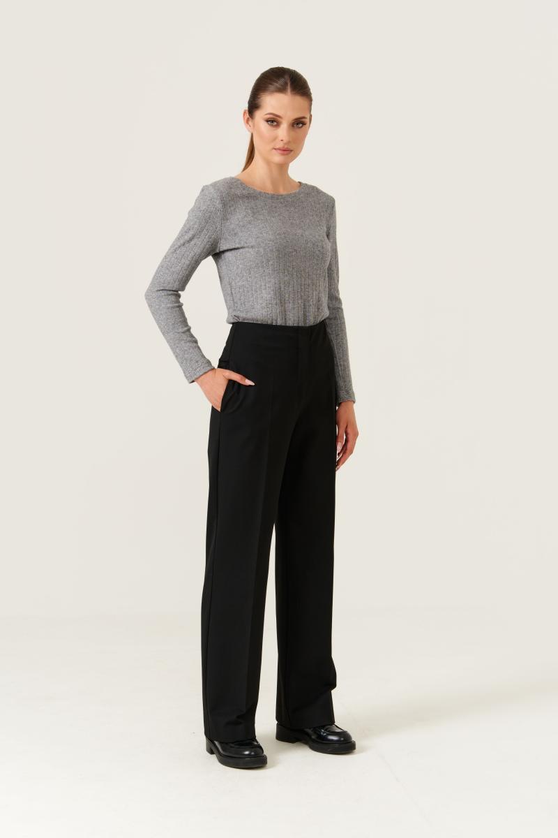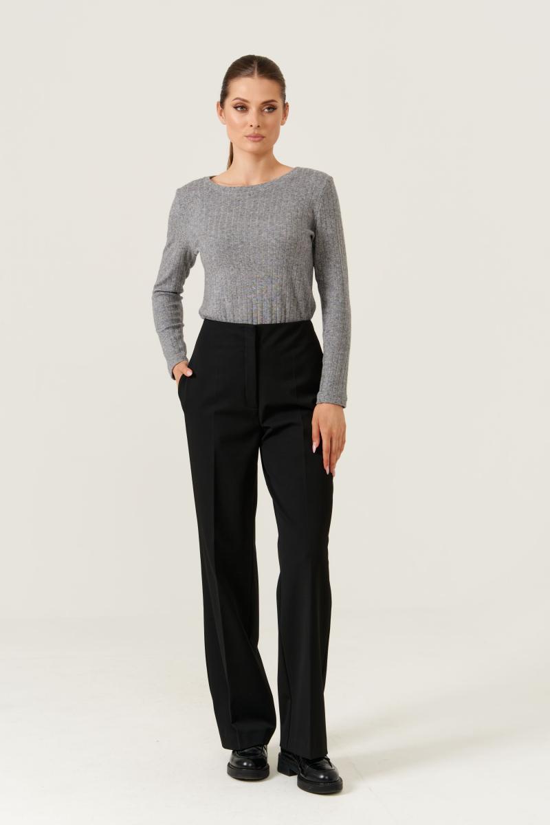 Брюки женские прямые из поливискозной ткани с начёсом для повседневной носки в холодные дни. Верхний срез брюк обработан обтачкой, застежка на один крючок, а также имеется застежка на тесьму-молнию в среднем шве брюк. Задняя часть брюк имеет четыре талиевые вытачки, а также два прорезных кармана в рамку с двумя обтачками. Отличный вариант брюк в классическом черном оттенке, которые будут гармонично смотреться под любые изделия. В данных брюках вам будет очень комфортно и тепло за счет имеющегося начеса.