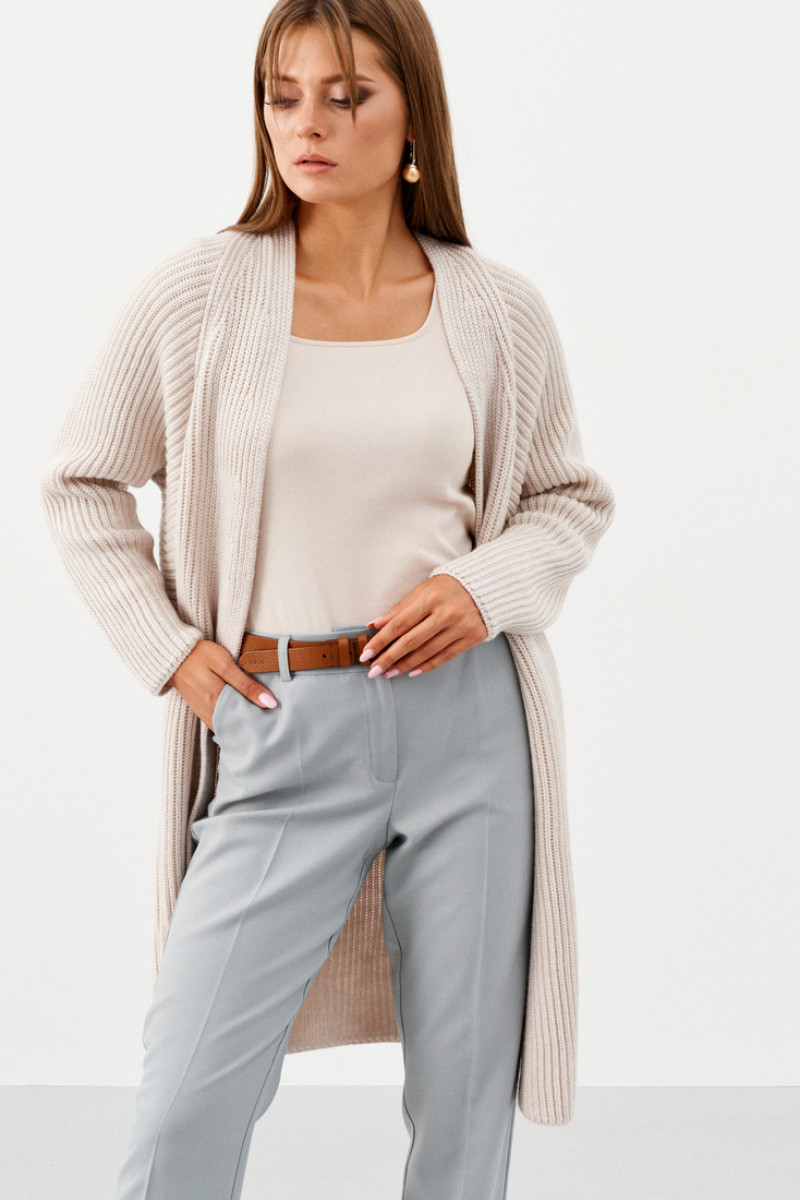 Женский вязаный длинный кардиган от бренда Ketty - отличное дополнение к вашему гардеробу. Универсальный теплый кардиган прямого силуэта без застежек выполнен из шерстяной пряжи. Рукав длинный, пройма спущенная имеет фигурную вязку. Отлично сочетается с брюками, юбками, платьями и абсолютно всеми элементами одежды. При правильном уходе вязаный кардиган не теряет форму и не растягивается.