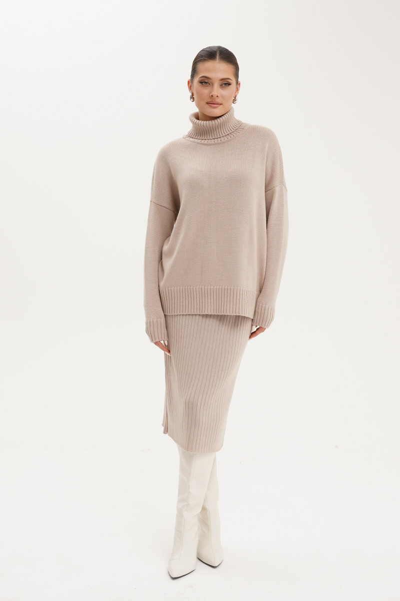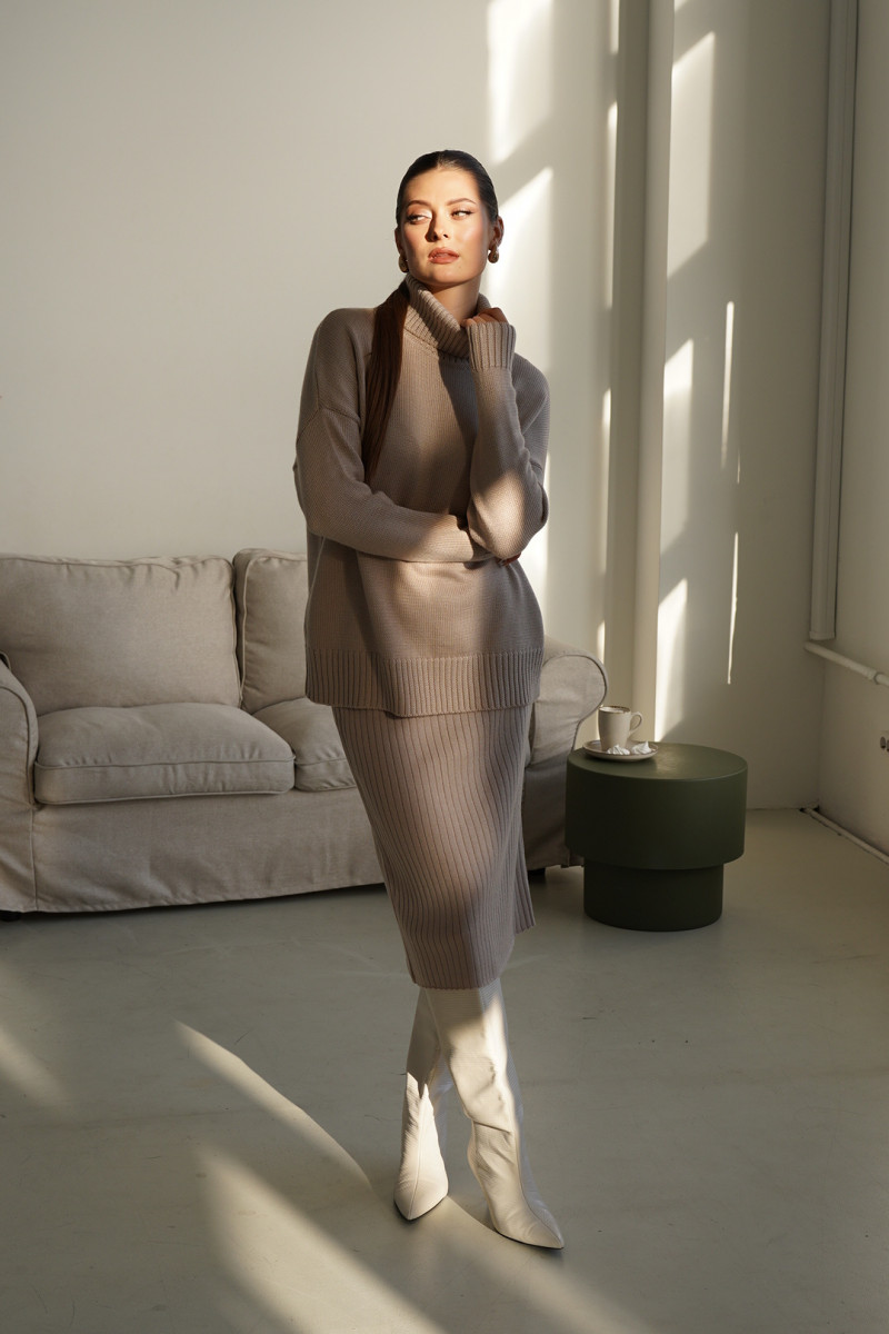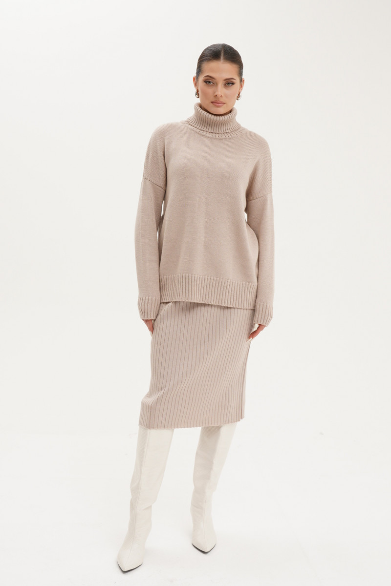 Шерстяная пряжа обеспечит тепло и комфорт в холодное время года, а длина юбки, чуть ниже колена, придает ей элегантность и практичность. Благодаря своей базовой цветовой гамме, она легко сочетается с различными верхами и аксессуарами, позволяя вам создавать разнообразные образы для любых деловых ситуаций.