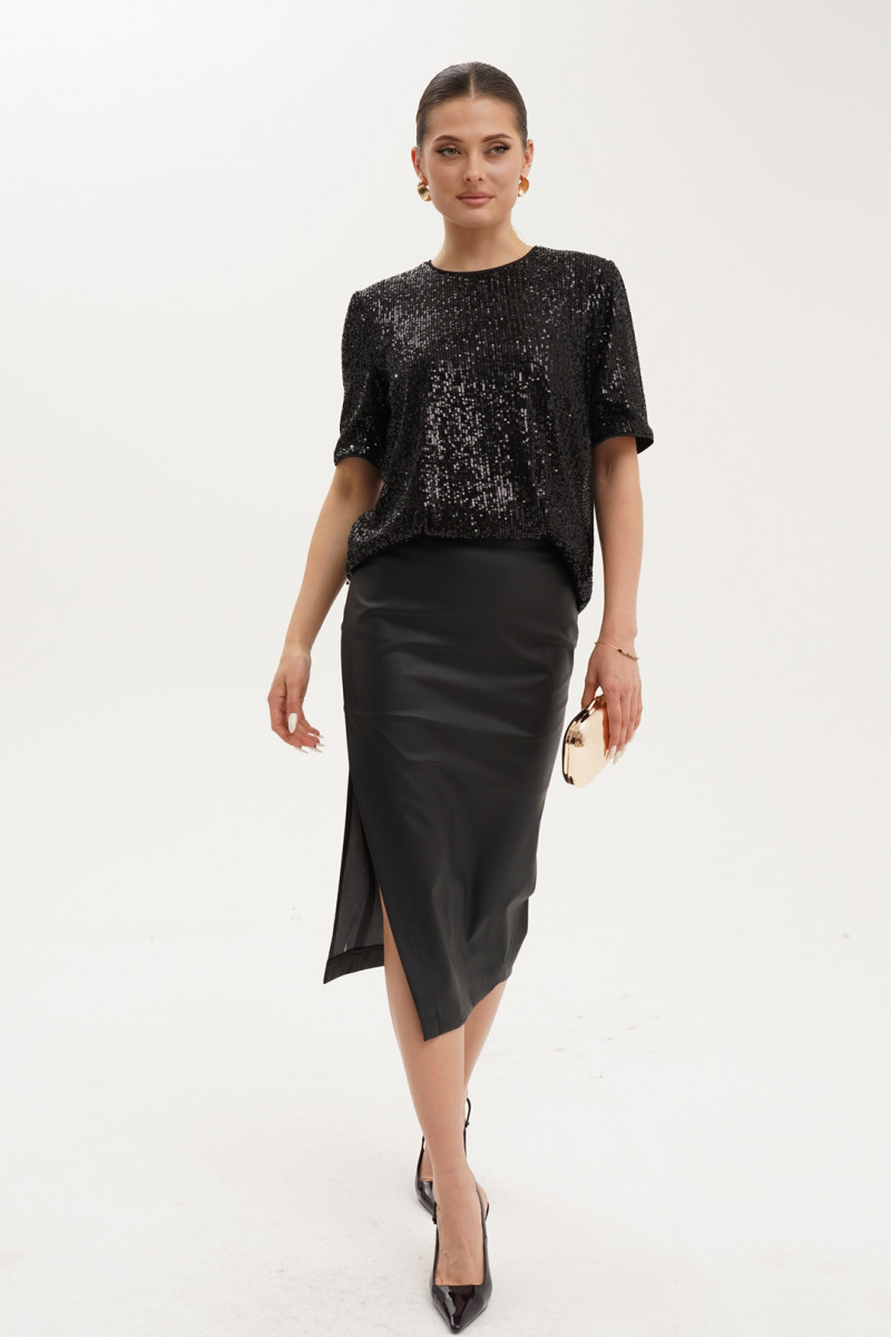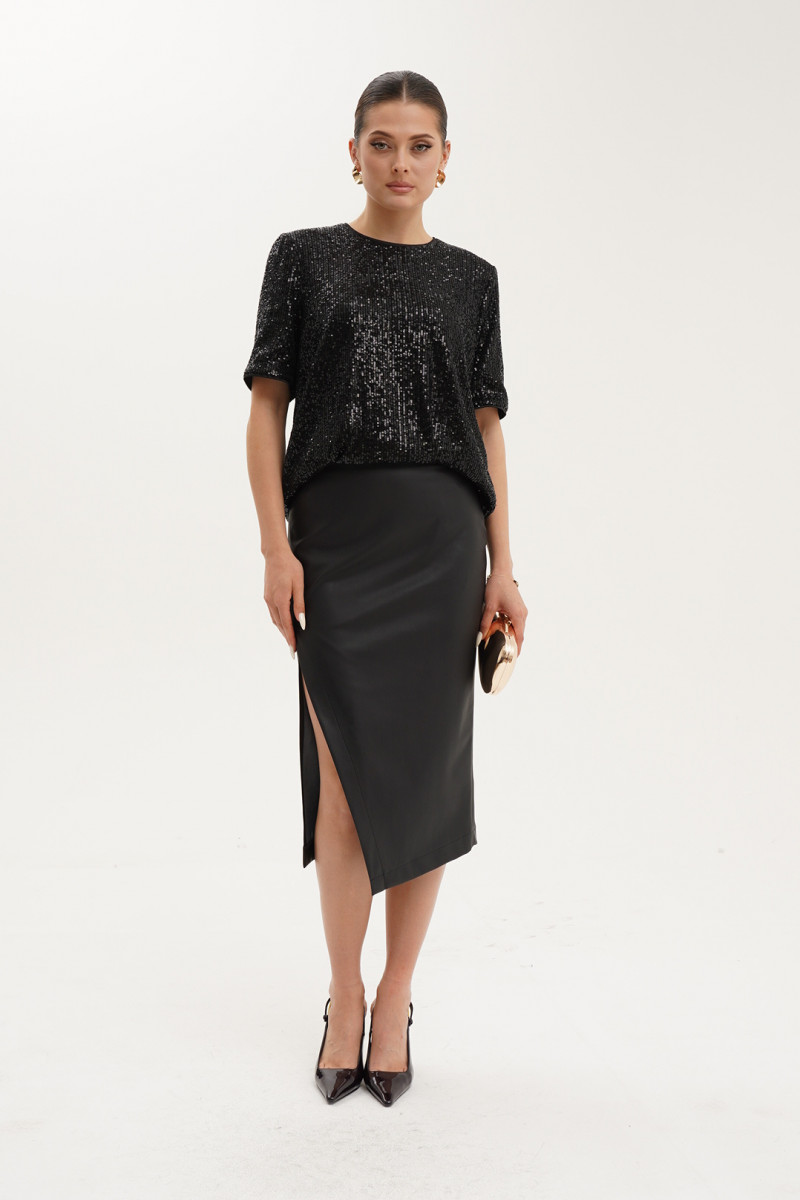 Юбка женская из эко кожи для повседневной носки. Верхний срез юбки обработан обтачкой. Облегающая юбка карандаш имеет на переднем полотнище разрез сбоку по ноге. В юбке имеется потайная застежка-молния в среднем шве заднего полотнища юбки. Юбка на поливискозной подкладке. Длинна юбки миди. Очень красивая юбка, в которой вы будете чувствовать себя комфортно.