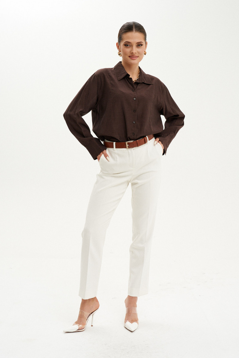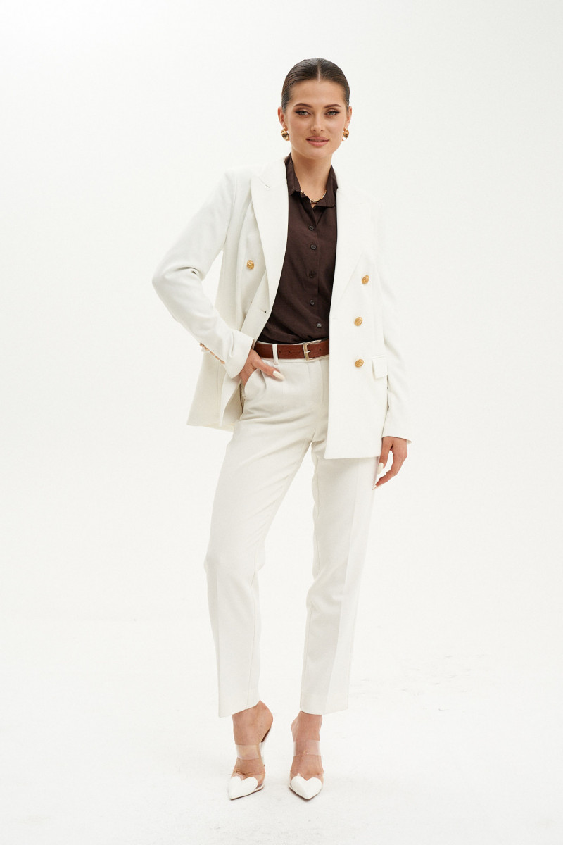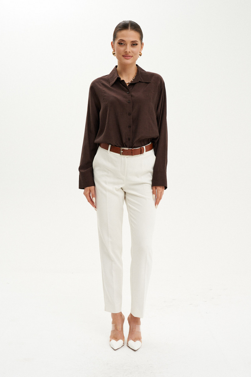 | 46 | Брюки: Высота посадки - 27,5см, Длина брюк с поясом - 102см, Длина по внутреннему шву - 76см, Ширина брючин сверху - 68см, Обхват брюк по низу - 37см, Ширина по бедрам - 52,5см, Ширина по талии - 38,5см; |
