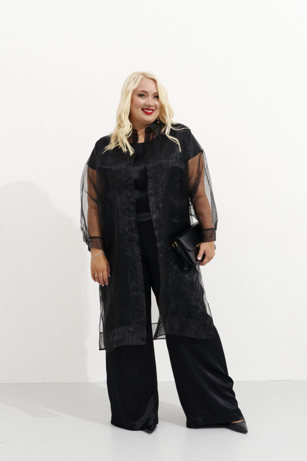 | 46 | Брюки: Высота посадки - 26,5см, Длина брюк без пояса - 103см, Длина по внутреннему шву - 79см, Ширина брючин сверху - 57см, Обхват брюк по низу - 29см, Ширина по бедрам - 46,5см, Ширина по талии - 39см; |