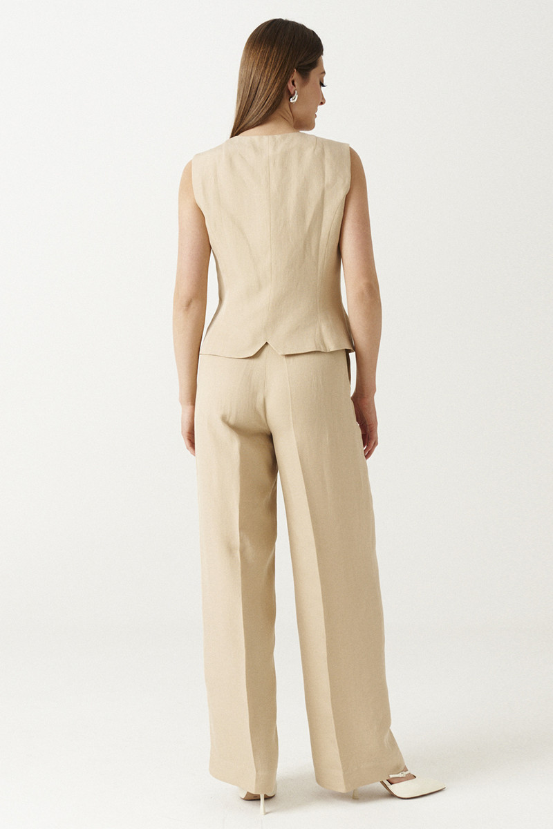 Прямые широкие брюки – удобная одежда, повседневной носки и особых случаев. Стильные брюки для прямые по силуэту. Пояс, дополненном резинкой, что очень удобно. В области боковых швов располагаются прорезные карманы. Боковая линия слегка смещена. Отлично сочетается с блузками, футболками, топами, майками, жакетами. Данные брюки пошиты из льняной ткани. Льняная ткань обладает гигроскопичностью, воздухопроницаемостью и подойдёт для жарких дней. Заказывайте летние брюки больших размеров, чтобы пополнить свой сезонный гардероб практичной вещью.