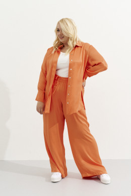 Широкие вискозные брюки бренда Ketty отлично подойдут для повседневного стиля. Брюки имеют широкие штанины, позволяющие коже дышать в жаркую погоду. Они сделаны из блестящего вискозного материала, что делает их легкими и приятными к телу. Широкие брюки создают ощущение свободы и легкости, а блестящая вискоза добавляет нотку роскоши и изысканности в образ. В таких широких брюках женщина будет чувствовать себя уверенно и стильно. Резинка в талии позволяет легко надевать их, в том числе и на беременных женщин. Вискозные брюки свободного кроя пойдут как для повседневного, так и для праздничного образа. Благодаря своему легкому материалу, они отлично подойдут для пляжного отдыха и походов по морю. Это практичный и удобный вариант для активного отдыха. В брюках есть карманы. Вискозные брюки длинные со слегка завышенной талией, что делает их более яркими и модными. Летние брюки однотонные и яркие. Они отлично сочетаются с обувью на каблуке, а также с более спортивной обувью, например, с кедами. Широкие вискозные брюки - это универсальный предмет гардероба, который может стать стильным дополнением к любому образу. Легкие и приятные к телу, они станут незаменимой вещью в летнем гардеробе каждой девушки. В дополнение к брюкам можно купить свободную рубашку, чтобы дополнить образ. Такой костюм может быть идеальным выбором для особых событий, вечеринок и деловых встреч. Он подходит как для смелых экспериментов, так и для классических образов. В таком костюме каждая женщина будет выглядеть уверенно и привлекательно.