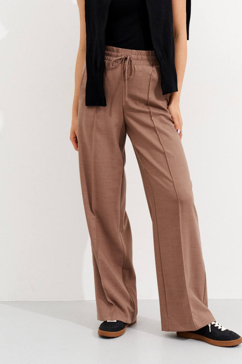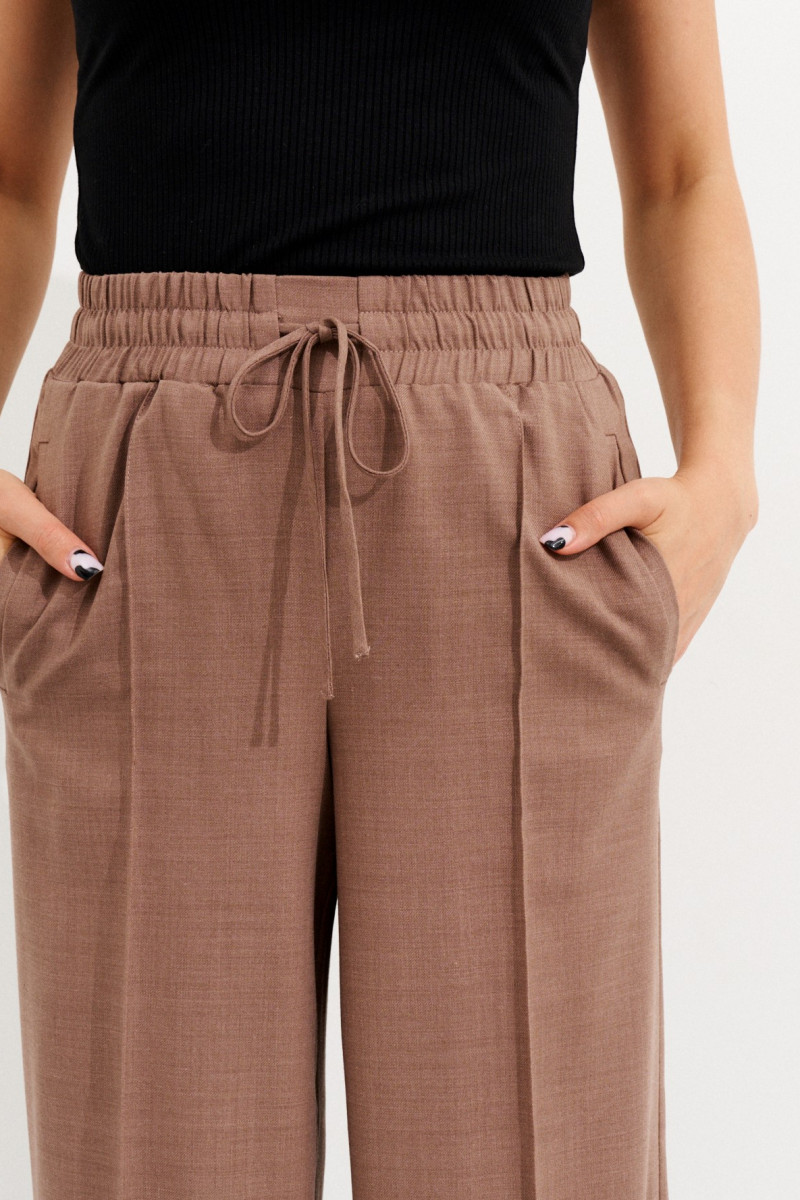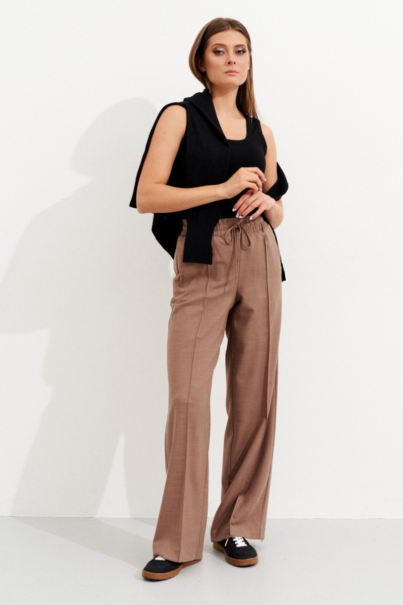 | 44 | Брюки: Высота посадки - 30см, Длина брюк без пояса - 108,5см, Длина по внутреннему шву - 85см, Ширина брючин сверху - 68см, Обхват брюк по низу - 57,5см, Ширина по бедрам - 49,5см, Ширина по талии - 34см; |