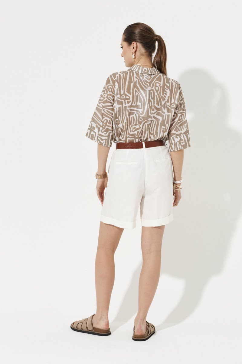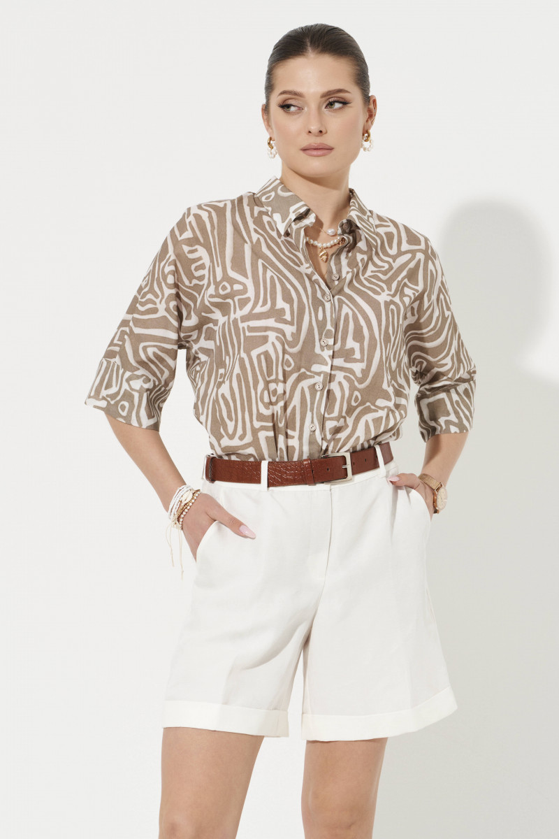 Шорты женские прямые из смесовой ткани для повседневной носки. Шорты имеют высокую посадку. Верхний срез шорт обработан притачным поясом. Застежка на крючок, а также имеется застежка в среднем шве на тесьму-молнию. Задняя часть шорт имеет две талиевые вытачки и два прорезных кармана в рамку с двумя обтачками. В боковых швах имеются прорезные карманы с подкройным бочком. Низ шорт обработан отложной манжетой. Очень красивые шорты, в которых вы будете чувствовать себя комфортно, они станут незаменимой вещью в вашем гардеробе.