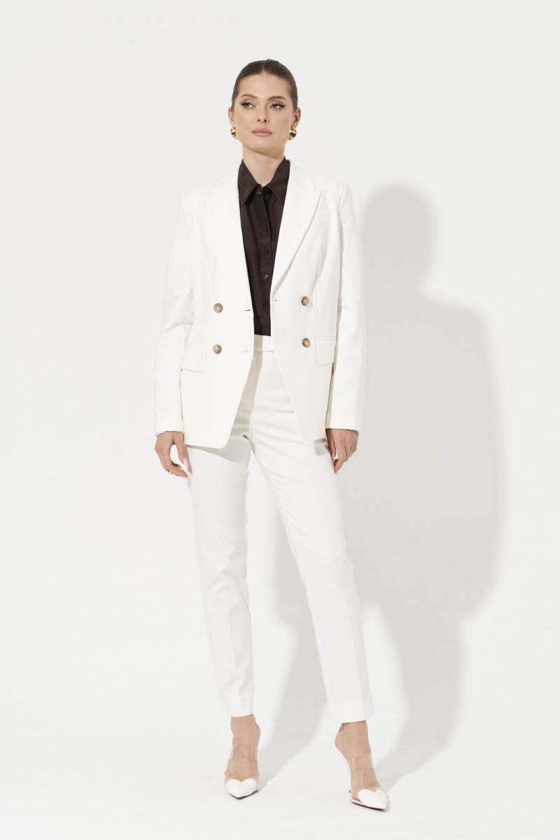 Стильный двубортный жакет с роговыми пуговицами бренда Ketty покорит вас своим полуприталенным и актуальным кроем. Пиджак выполнен из высококачественной хлопковой ткани. Жакет с лёгкостью впишется в любой гардероб и станет вашим бесспорным фаворитом. Посадка добавит силуэту пиджака изящества, а образу элегантности. Жакет средней длины, двубортный с прорезными карманами с клапанами, на рукавах имеются декоративные шлицы, которые дополняют изящные роговые пуговицы. Такой классический жакет, но с ярким акцентом на пуговицы прекрасно подойдет девушкам для вечерних образов, в офис, на работу, на свидание, на прогулку.