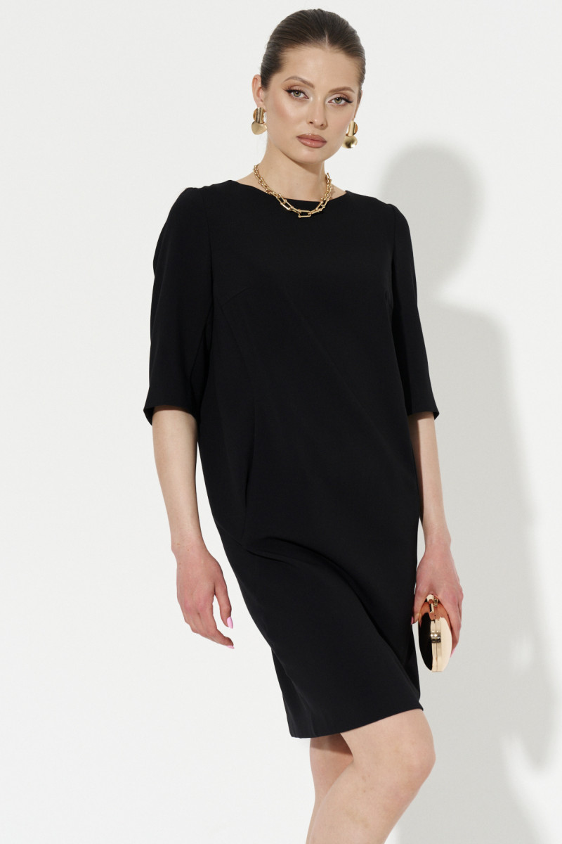 Платье женское из смесовой ткани для повседневной носки. Платье силуэта кокон. Перед имеет две нагрудные вытачки и вертикальные рельефы. По переду в рельефе располагаются карманы. Спинка имеет плечевые складки и средний шов с потайной застежкой-молнией в шве. Рукава чуть выше локтя. Очень изысканное платье на все случаи жизни, комфортное в носке и с безупречной посадкой по фигуре.