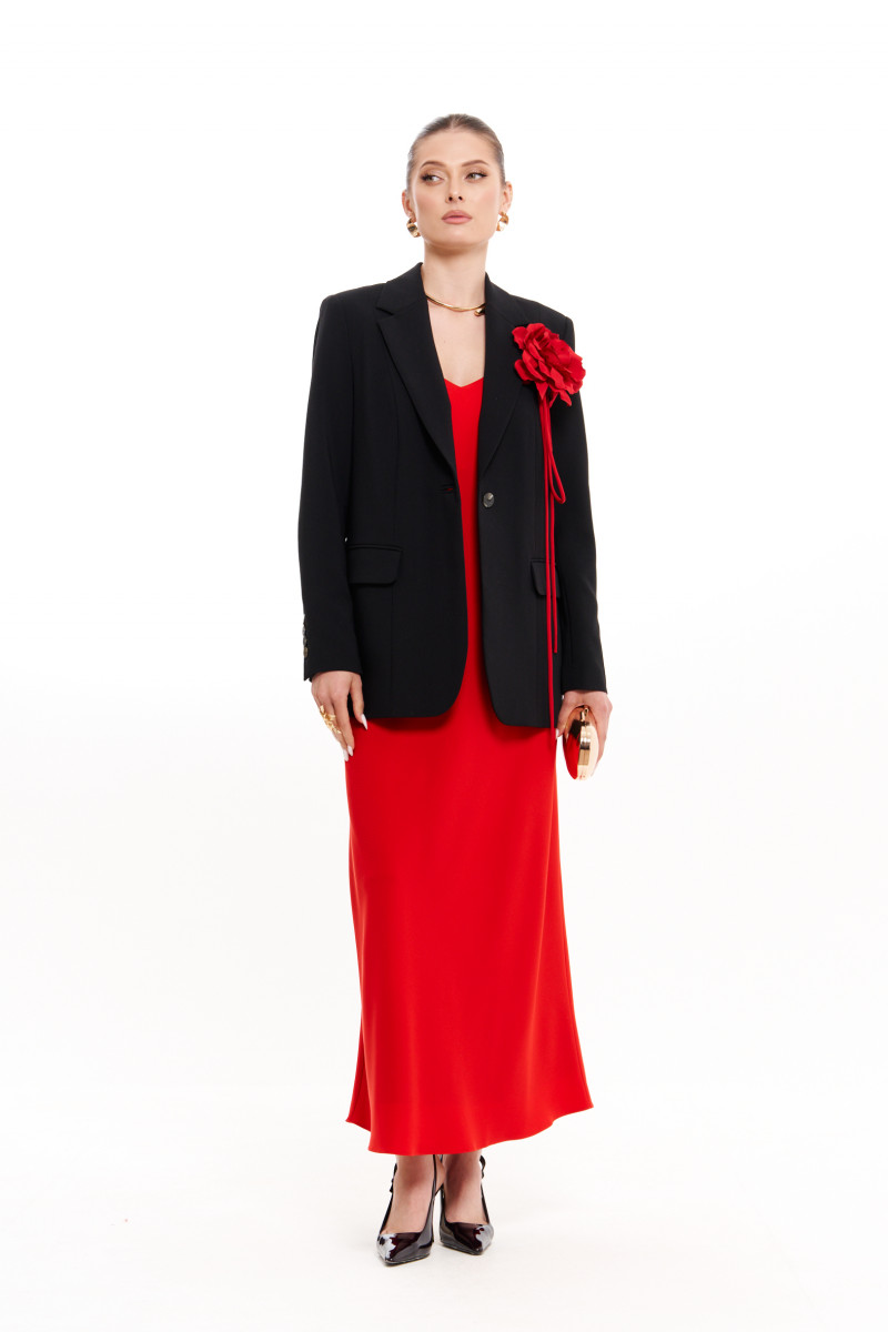 | 52 | Жакет: Длина изделия - 75см, Длина рукава - 63см, Ширина плеча - 13см, Ширина по бедрам - 63см, Ширина по груди - 58см, Ширина рукава - 21см; |