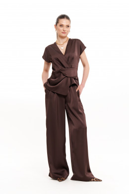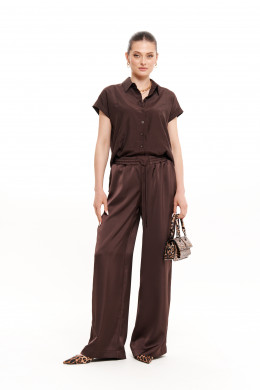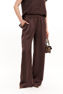 Брюки женские прямые из струящейся атласной ткани для повседневной носки. Верхний срез брюк обработан притачным поясом, отрезная прямая часть по переду, резинка по задней и боковой части пояса, а также для регулирования облегания имеется шнурок. На концах шнурка металлические наконечники. В брюках в боковом шве имеются потайные боковые карманы. Брюки широкие, прямые. За счет качественного состава ткани брюки они не будут мяться. Стильные и очень практичные брюки, в которых вы обязательно будете выглядеть безупречно и очень опрятно.
