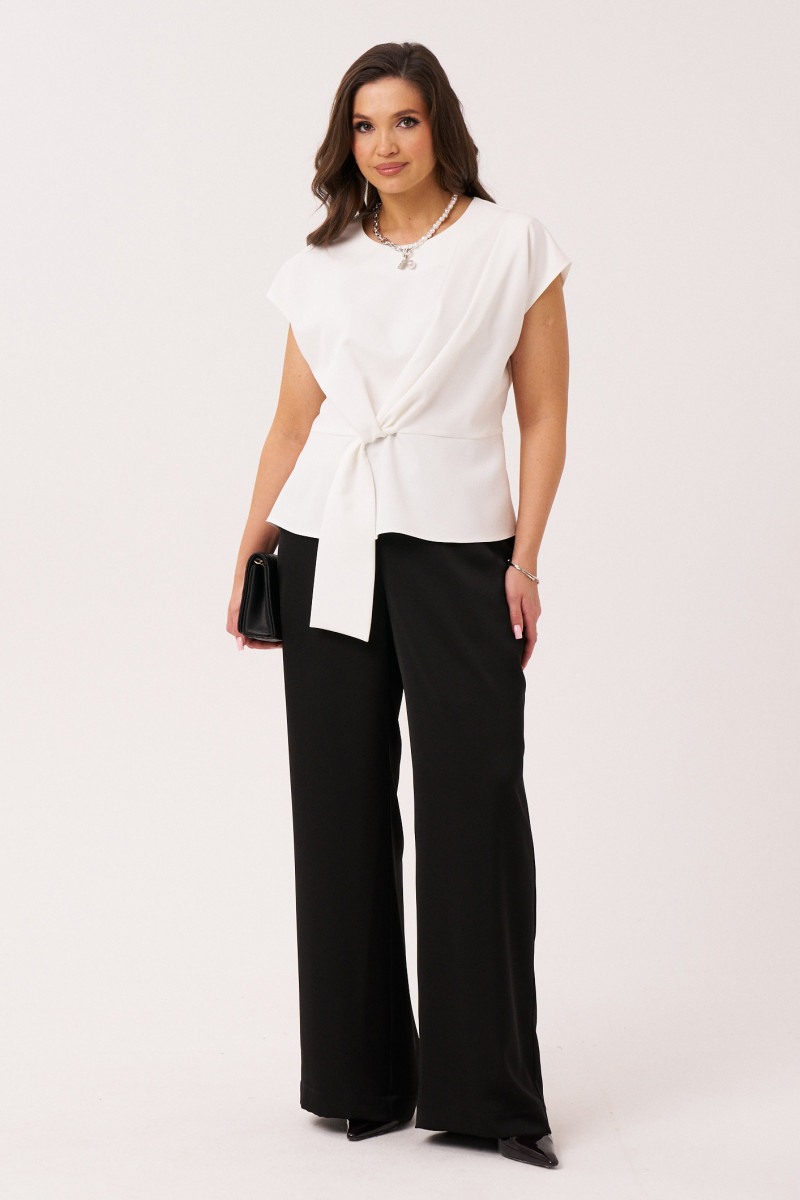 Женский костюм (блузка, брюки) 102020 (Молочно-черный)