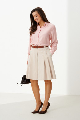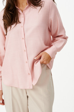 Эта стильная женская блузка светло-бежевого оттенка идеально подойдет для повседневной носки. Выполненная в прямом силуэте, она обеспечивает комфорт и свободу движений. Ткань поливискозная, струящаяся, что придает изделию легкость и изящность. Перед украшен центральной бортовой застежкой на обметанные петли и пуговицы, а низ изделия выполнен с закругленным краем, добавляя изящества образу. Горловина оформлена классическим рубашечным воротником, а рукава завершены притачными манжетами с застежками на две обметанные петли и пуговицы — практично и стильно. Эта очень легкая и практичная блузка станет отличным выбором для ежедневных образов, сочетая комфорт с элегантностью и привлекательностью.