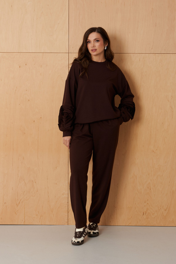 | 44 | Брюки: Высота посадки - 31см, Длина брюк с поясом - 116см, Длина по шаговому шву - 86см, Ширина брючин сверху - 65см, Обхват брюк по низу - 54.5см, Ширина по бедрам - 48см, Ширина по поясу - 38.5см; |