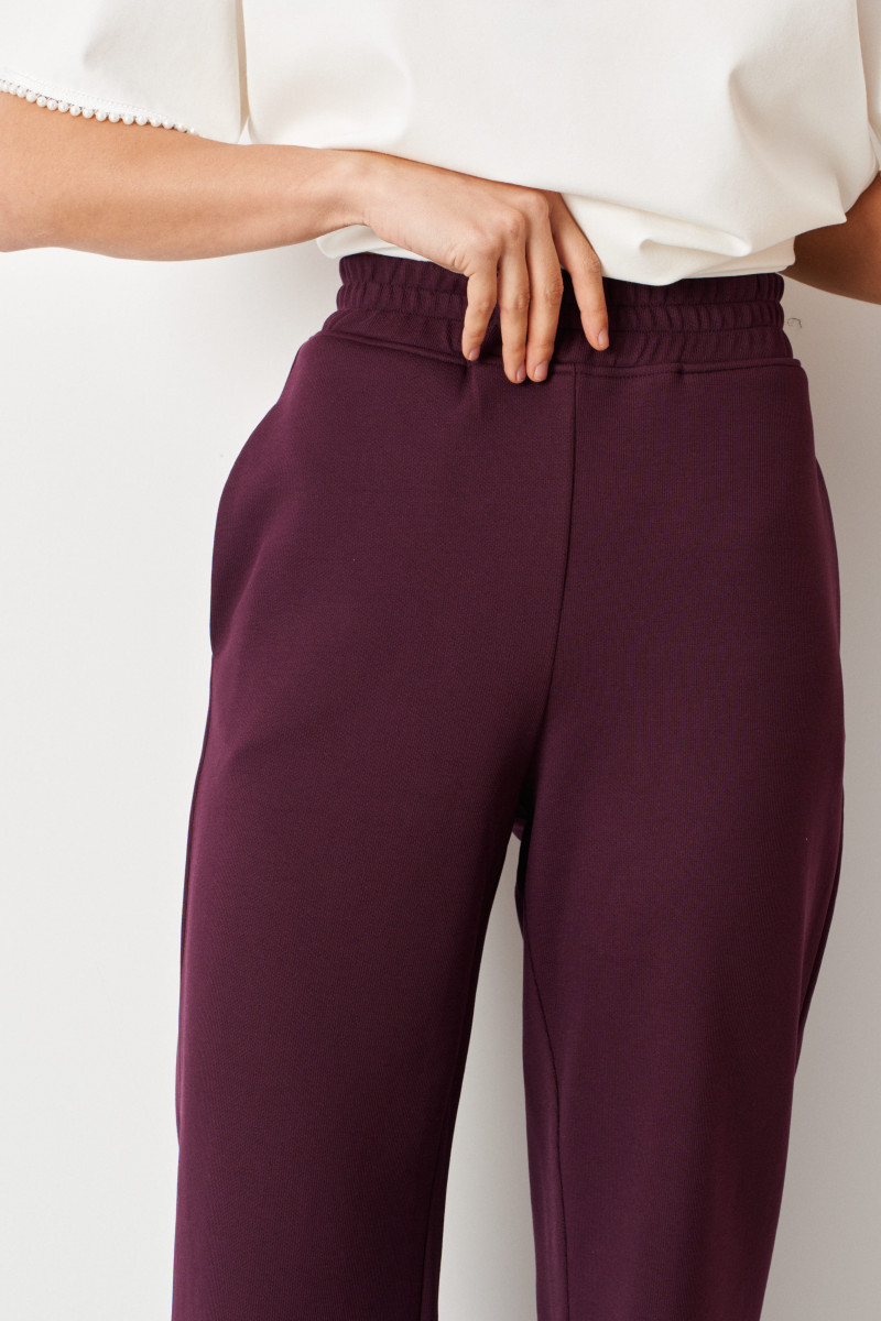 Бордовый оттенок придает образу изысканность и стильность, делая эти брюки универсальным элементом гардероба, который легко сочетать с различными топами, блузками и обувью. Они идеально подойдут как для повседневных прогулок, так и для более неформальных встреч или работы.