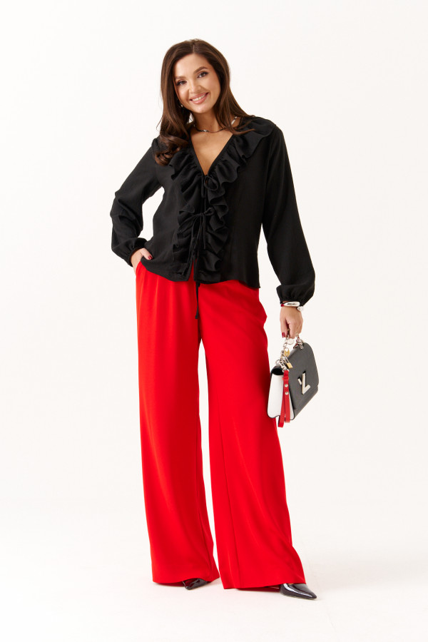 | 52 | Блузка: Длина изделия - 70см, Длина рукава - 62см, Обхват шеи - 46см, Ширина плеча - 13.5см, Ширина по груди - 58см, Ширина по низу - 61см, Ширина рукава - 21см; |