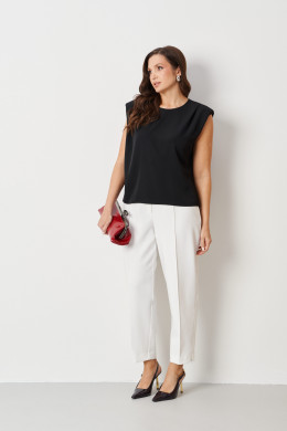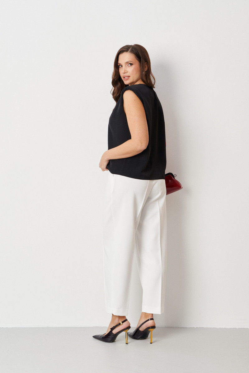 | 46 | Блузка: Длина изделия от высшей плечевой точки до низа - 57,5см, Длина изделия по спинке - 55см, Ширина плеча - 14,3см, Ширина по груди - 53см, Ширина по низу - 53см; |