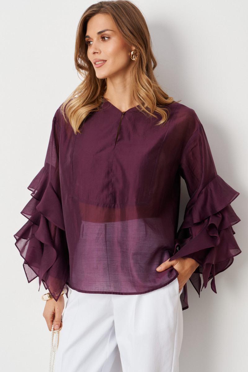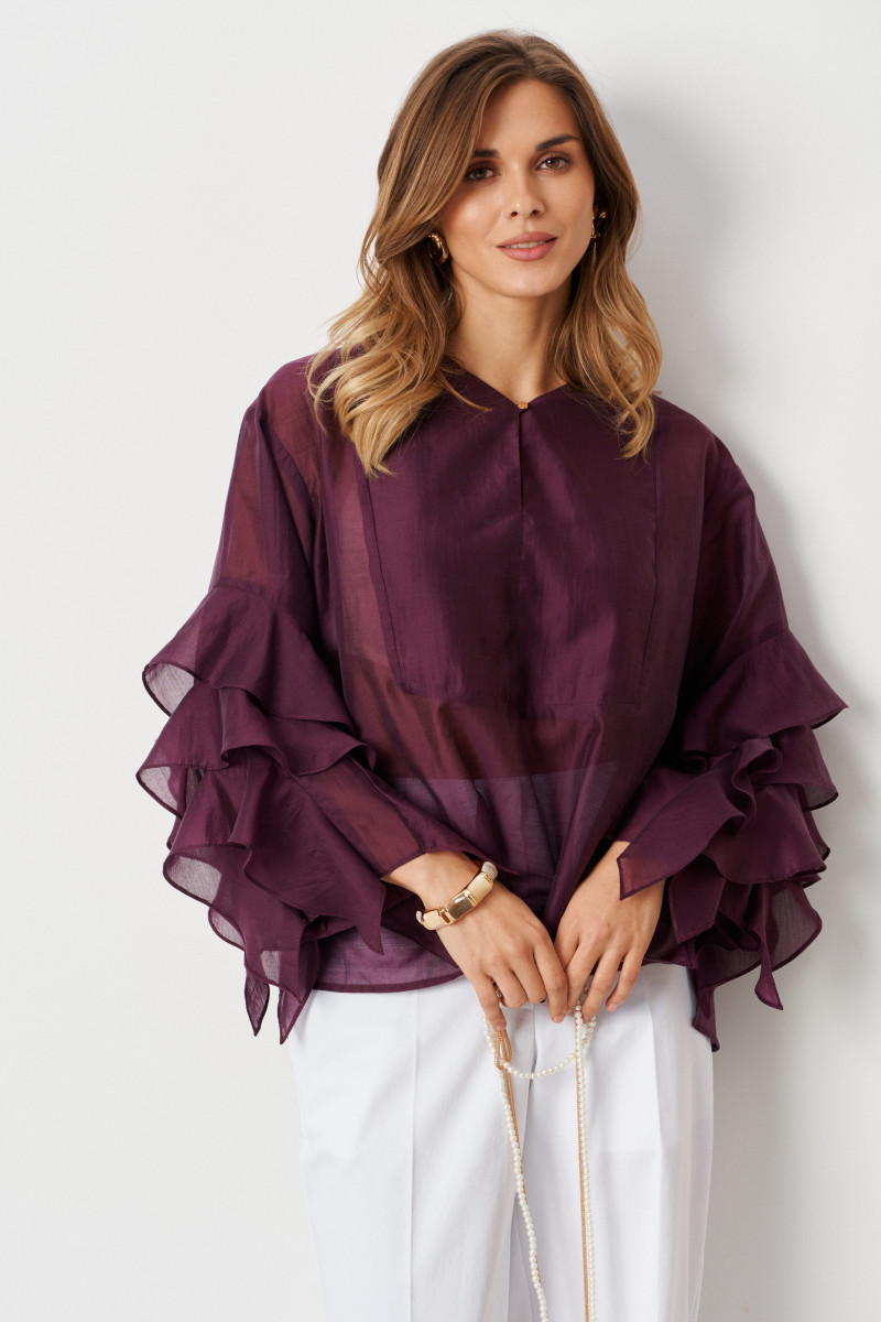 | 44 | Блузка: Длина изделия по спинке - 67см, Длина рукава - 46см, Ширина плеча - 15см, Ширина по груди - 56см, Ширина по низу - 58см, Ширина по талии - 56см, Ширина рукава вверху - 41см, Ширина рукава внизу - 41см; |