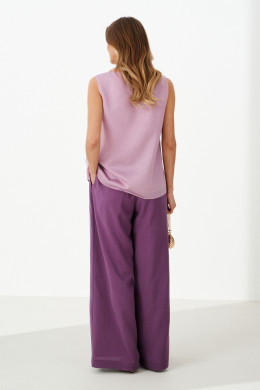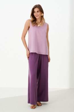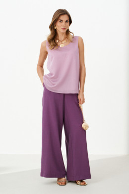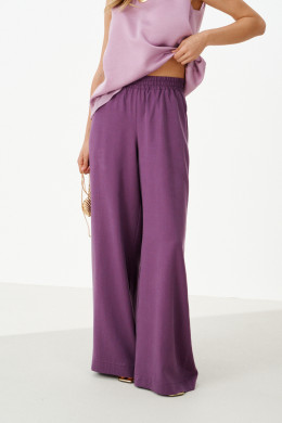 Эти женские брюки выполнены из поливискозной ткани и идеально подходят для повседневной носки. Они имеют классический прямой крой и обработаны сверху притачным поясом с вставкой на резинке, которая обеспечивает комфортную посадку и свободу движений. В боковых швах расположены потайные карманы, придающие изделию функциональность и аккуратный внешний вид. Брюки выполнены в благородном тёмно-сиреневом оттенке, который легко сочетается с различными аксессуарами и обувью. Такой стильный и удобный вариант станет отличным дополнением к вашему повседневному гардеробу и поможет создать элегантный образ в любой ситуации.