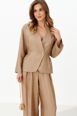 Эти женские брюки выполнены из мягкой и приятной на ощупь поливискозной ткани в насыщенном оттенке капучино. Модель прямого кроя обеспечивает комфорт и свободу движений. Верхний срез брюк обработан притачным поясом с вставкой на резинке, что делает посадку мягкой и удобной, а также позволяет легко регулировать объем. Такой дизайн делает эти брюки отличным выбором для офисных и деловых образов, при этом универсальный цвет капучино позволяет без труда сочетать их с различными топами и аксессуарами, создавая стильные и элегантные комплекты.