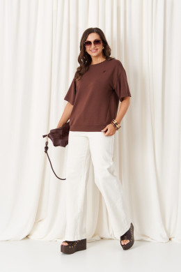 Брюки женские из тонкого джинса -- ткани с большим содержание хлопка для повседневной носки. Брюки свободные, чуть зауженные к низу. Верхний срез брюк обработан притачным поясом со вставкой на резинке, застежка на одну обметанную петлю и одну пуговицу, а также имеется застежка на тесьму-молнию в среднем шве брюк. Передняя часть брюк имеет два кармана с подкройным бочком и декоративные кнопки, а также на передней части брюк располагается шов. Задняя часть брюк имеет два накладных кармана с декоративными кнопками. Очень стильные брюки белого оттенка, которые безусловно будут радовать вас своим чудесным видом и прекрасной посадкой.