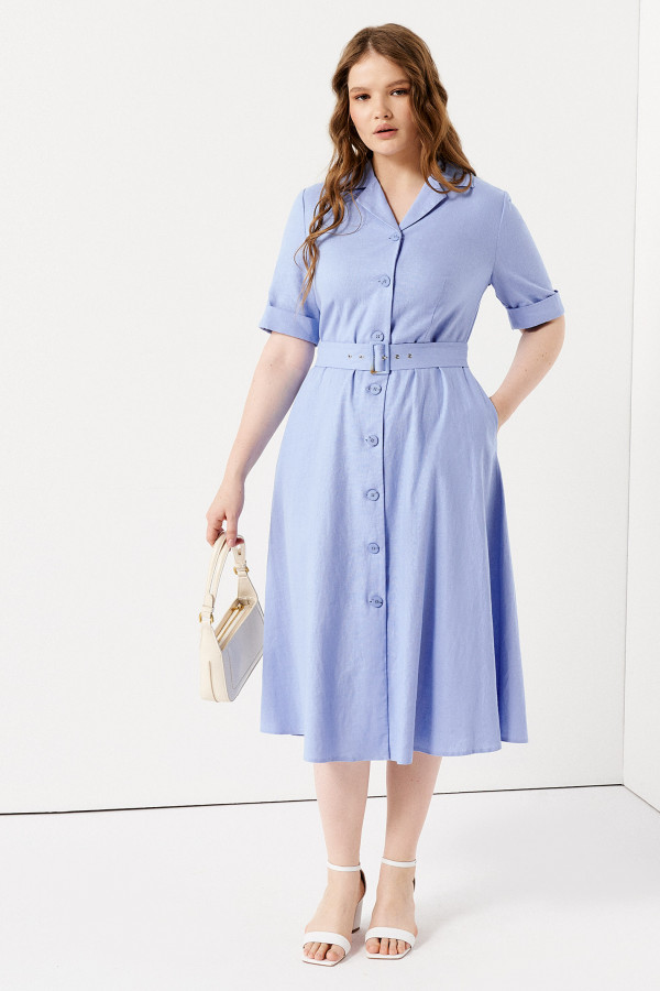 Платье женское из льняной ткани для повседневной носки. Платье прямое без подкладки с прорезными карманами в боковых швах. Горловина круглая, рукав короткий оформлен сборкой.