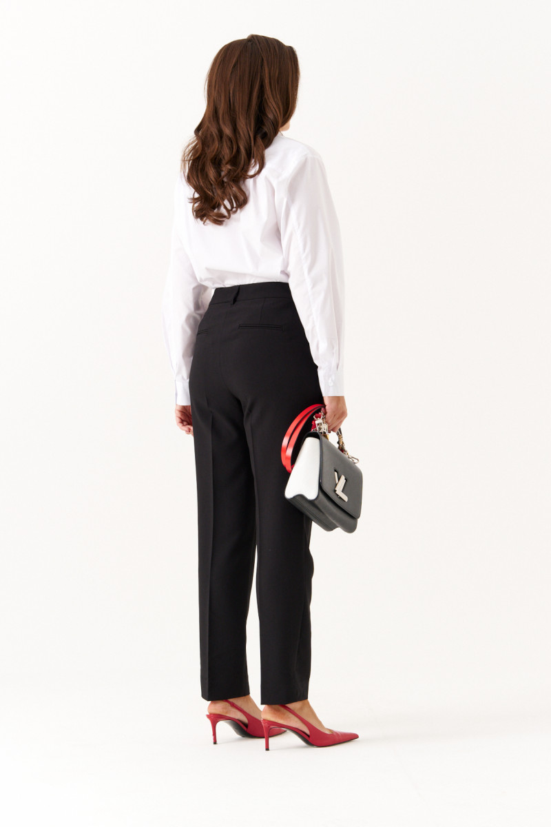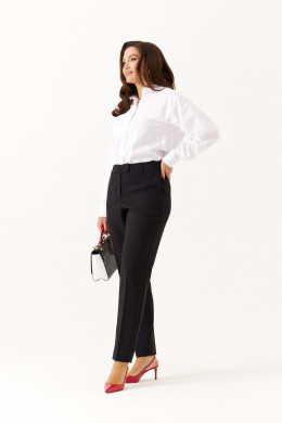 Красивые элегантные брюки из ткани с добавлением вискозы с высокой талией, боковыми карманами - тренд этого сезона. Сбоку брючин выполнены разрезы. Свободные и прямые вверху, более узкие внизу. Стильные брюки подойдут для женщин высокого роста или для любительниц высоких шпилек. Прямые брюки со стрелкой делают образ элегантным, вытягивают силуэт, визуально удлиняют ноги. Брюки женские подойдут для вечерних образов, в офис, на работу, на свидание, на прогулку.