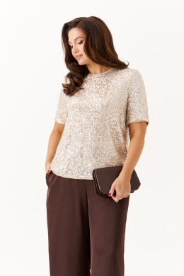 Блузка женская из ткани в пайетки с натуральной вискозной подкладкой. Блузка прямого силуэта для торжественных мероприятий. Низ изделия и горловина блузки обработаны каймой из сетки. Рукав длиной до уровня локтя, низ рукава обработан каймой из сетки. Отличный вариант для тех, то любит носить качественные изделия с натуральной и дышащей подкладкой, а особенно для тек, кто выбирает всегда выглядеть шикарно. Блузка станет замечательным выбором для вечернего образа, который будет очаровывать всех своей изысканностью.