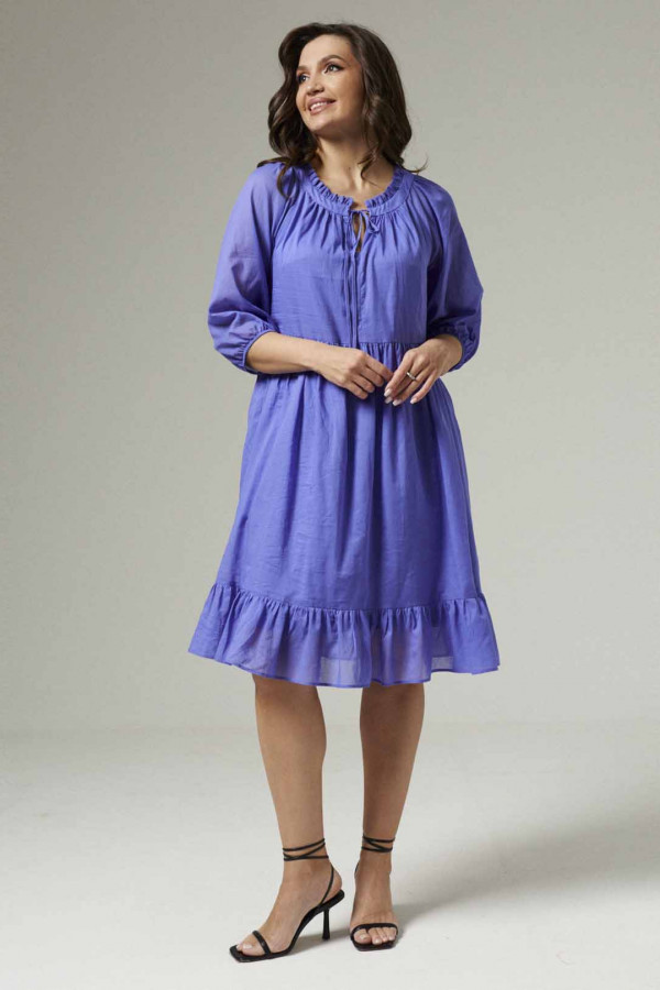 Офисное платье создано в свободном, расширенном фасоне. Оно не обтягивает силуэт, изысканно маскируя его несовершенства. Изделие скроено с округлым вырезом горловины и длинным втачным рукавом, изящно открывающим красивые запястья. Платье женское длиной до колена без проблем скроет массивные бедра, акцентируя внимание на стройных голенях.