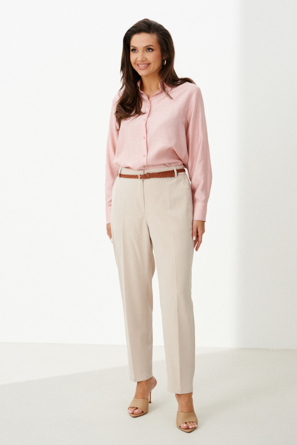 Женские брюки с высокой посадкой, поясом и наклонными карманами в боковом шве. Идеально ровные стрелки визуально удлиняют ноги. Брюки женские просты в уходе и удобны в носке. Плотная ткань хорошо держит форму, не теряет яркость после стирки.