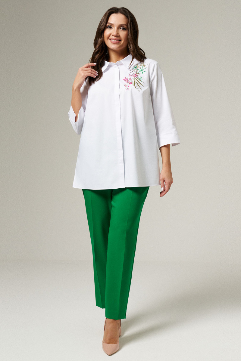 Комплект женский (блузка, брюки) 01420P (Бело-зеленый)