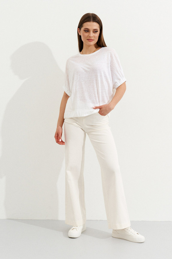 Летний вариант наряда идеально сочетается с трендовыми элементами современной моды. Натуральный лен, известный своими гипоаллергенными и воздухопроницаемыми свойствами, делает блузу комфортной даже в жаркую погоду. Такая стильная модель подчеркнет вкус женщины, предпочитающей элегантность и практичность.