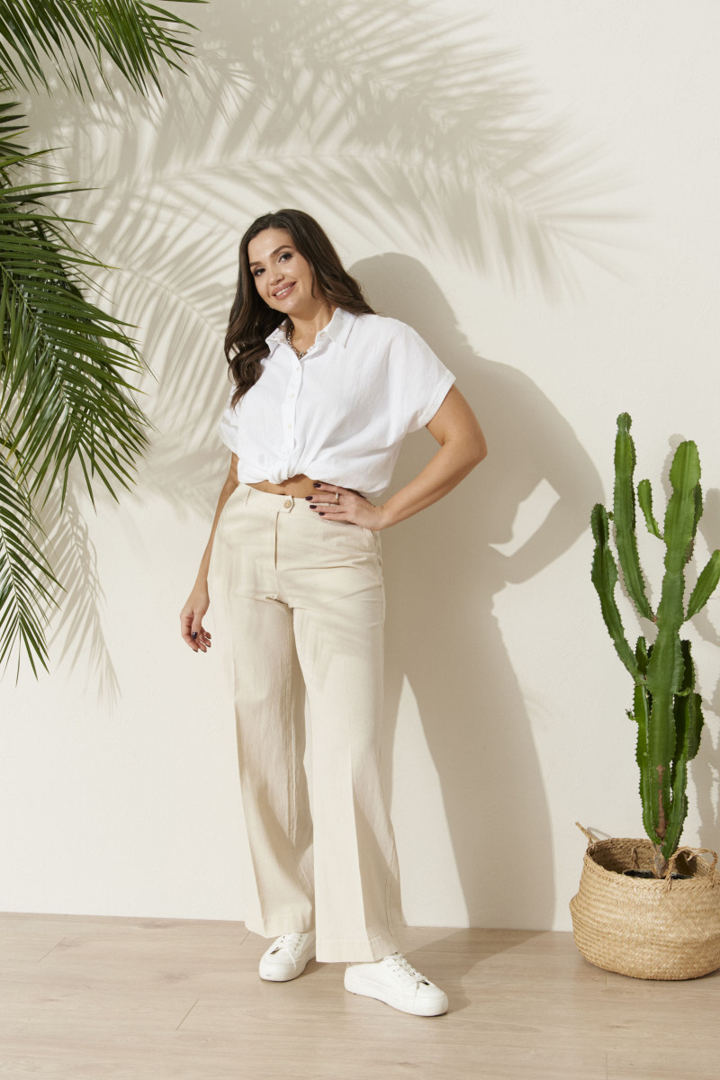 | 46 | Брюки: Высота посадки - 28см, Длина брюк с поясом - 107.5см, Длина по внутреннему шву - 81см, Ширина брючин сверху - 70см, Обхват брюк по низу - 56см, Ширина по бедрам - 52.5см, Ширина по талии - 32.5см; |