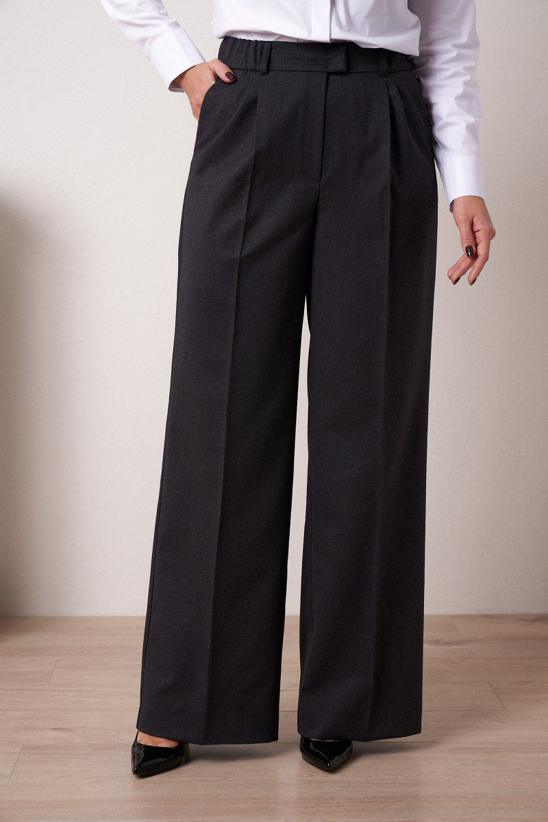 Брюки женские из смесовой ткани для повседневной носки прямого силуэта. Верхний срез брюк обработан притачным поясом со вставками на резинке в боковых частях брюк. Передняя часть брюк имеет четыре талиевые вытачки. Задняя часть брюк имеет две талиевые вытачки. Застежка в брюках на петлю пуговицу, а также на тесьму-молнию в среднем шве брюк. В боковых швах располагаются боковые прорезные карманы с подкройным бочком. Красивые и стильные брюки, в которых вы будете чувствовать себя уверенной.