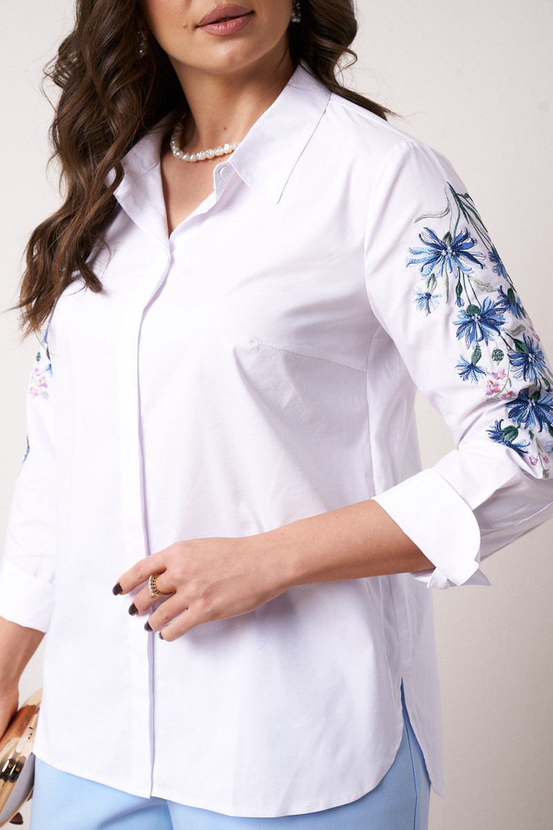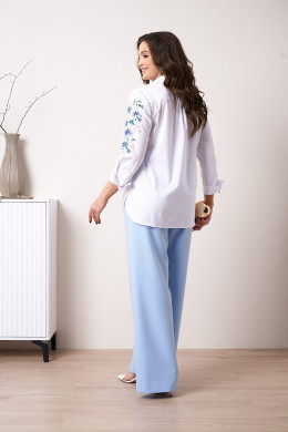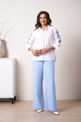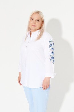 | 54 | Блузка: Длина изделия - 75.5см, Длина переда от высшей плечевой точки до низа - 76.5см, Длина рукава - 49.5см, Обхват шеи - 54см, Ширина плеча - 12.5см, Ширина по бедрам - 63см, Ширина по груди - 60.5см, Ширина рукава - 21.5см; |
