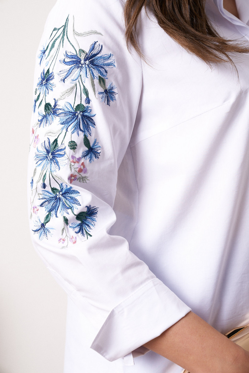| 56 | Блузка: Длина изделия - 75.5см, Длина переда от высшей плечевой точки до низа - 76.5см, Длина рукава - 49.3см, Обхват шеи - 55см, Ширина плеча - 12.5см, Ширина по бедрам - 65см, Ширина по груди - 62.5см, Ширина рукава - 22.2см; |