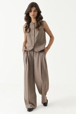 Жилет женский из поливискозной ткани для повседневной носки. Изделие полуприлегающего силуэта. Застежка центральная бортовая на обметанные петли и пуговицы. Жилет закруглен по низу борта. По переду располагаются рельефы идущие от линии проймы до низа изделия, а также прорезной карман с листочкой. Горловина круглая. Жилет полностью на поливискозной подкладке. Длина изделия классическая. Очень стильный, а главное классический вариант жилета, который будет отлично на вас смотреться.