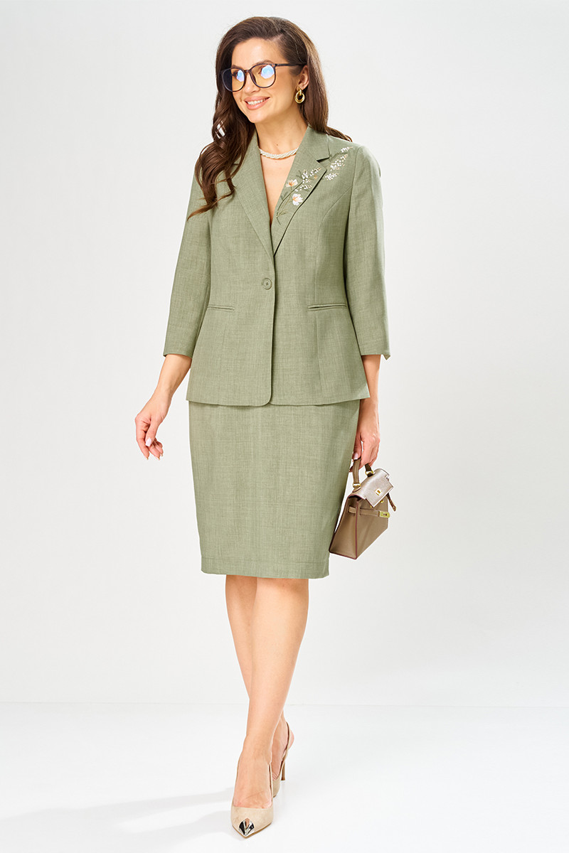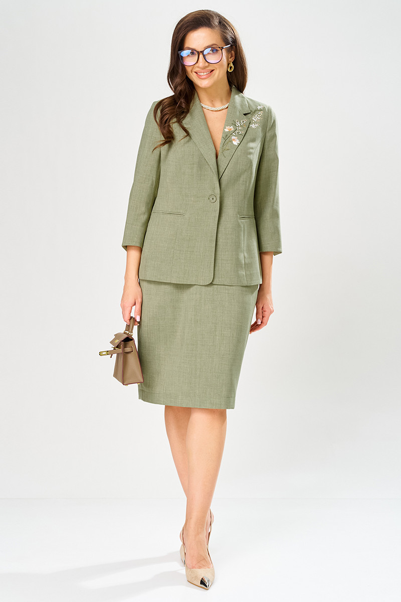 | 54 | Жакет: Длина изделия - 64,5см, Длина рукава - 48,5см, Ширина плеча - 11,7см, Ширина по бедрам - 60см, Ширина по груди - 57см, Ширина рукава - 21,2см; Юбка: Длина юбки без пояса - 61,5см, Ширина по бедрам - 60см, Ширина по талии - 43см; |