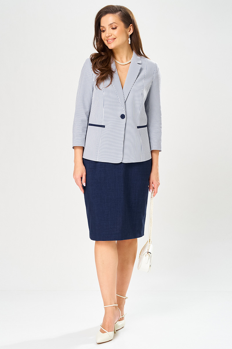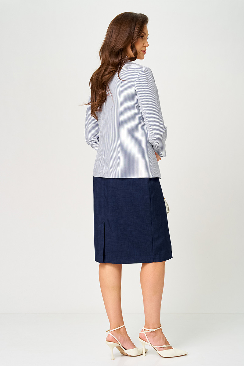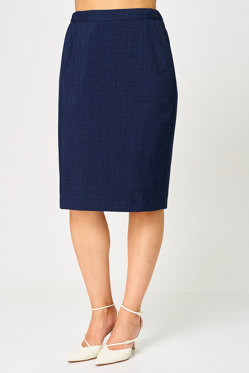 Это женская юбка из мягкой и прочной смесовой ткани с добавлением льна, которая дарит ощущение легкости и приятных тактильных ощущений. Модель слегка расширена к низу, что создает женственный и изящный силуэт. Верхняя часть юбки выполнена с притачным поясом и вставкой на резинке в боковой части, что обеспечивает хорошую посадку и комфорт при носке. Застежка выполнена на обметанную петлю с пуговицей, дополнительно оснащена потайной молнией, которая расположена в среднем шве для удобства. Переднее полотнище юбки украшена двумя талиевыми вытачками, придающими ей стройный вид, а заднее полотнище юбки дополнено двумя талиевыми вытачками и небольшим разрезом в среднем шве для облегчения движений. Этот синий оттенок делает юбку универсальным элементом гардероба, легко сочетающимся с различными топами и обувью. Стильная и практичная, она прекрасно подойдет для повседневных образов или более формальных случаев, подчеркивая женственность и изысканность.