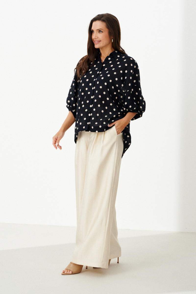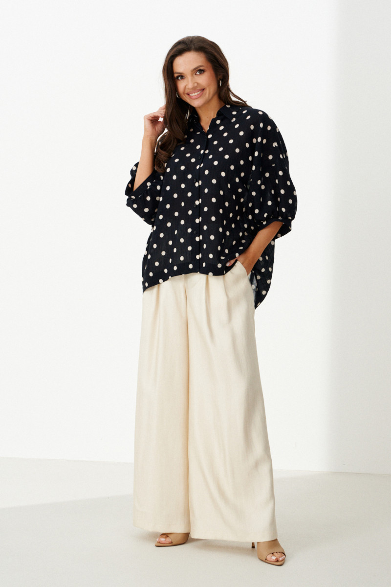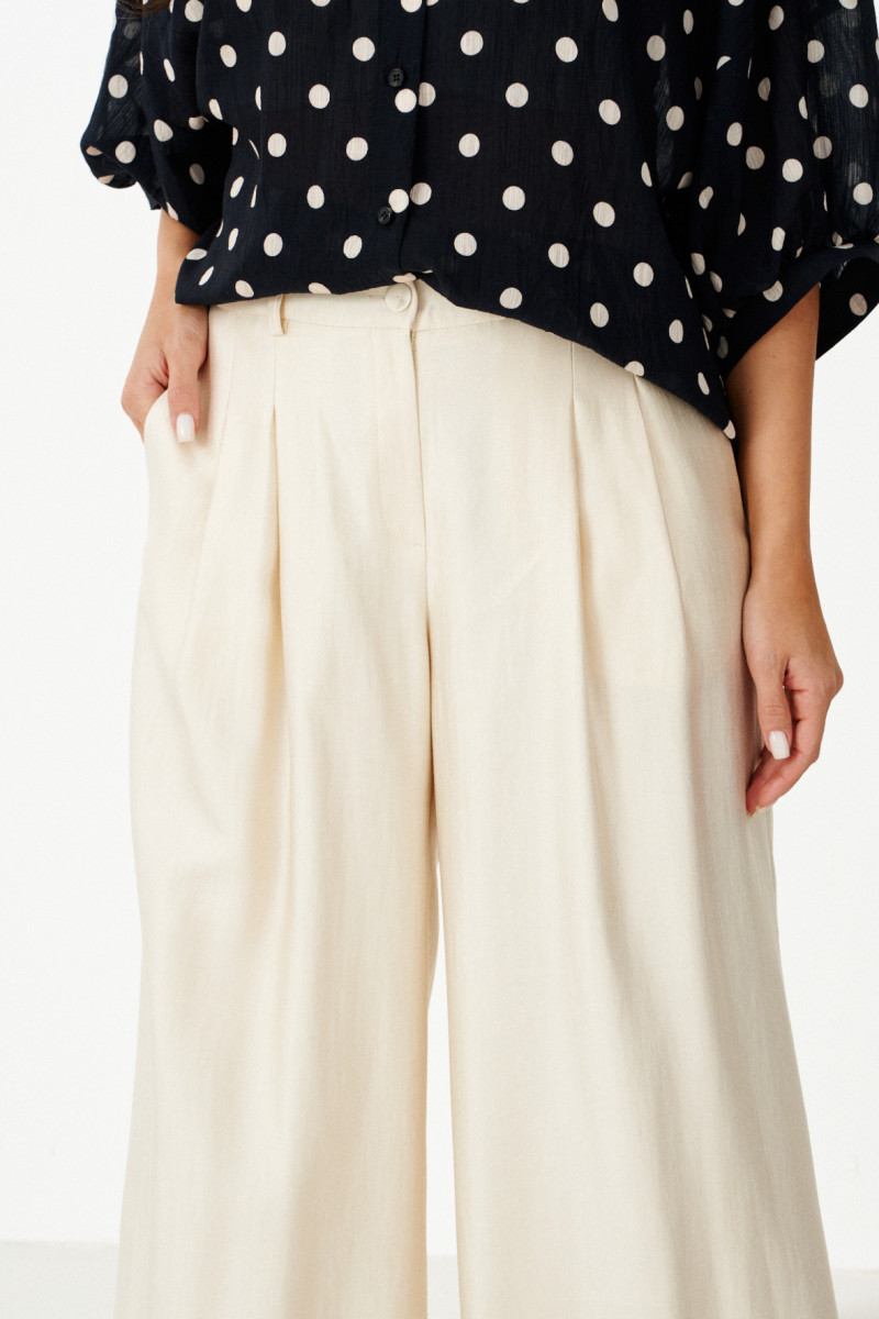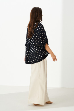 54Брюки: Высота посадки - 31см, Длина брюк без пояса - 107см, Длина по внутреннему шву - 81см, Ширина брючин сверху - 88.5см, Обхват брюк по низу - 77.5см, Ширина по бедрам - 56.5см, Ширина по талии - 43.5см;