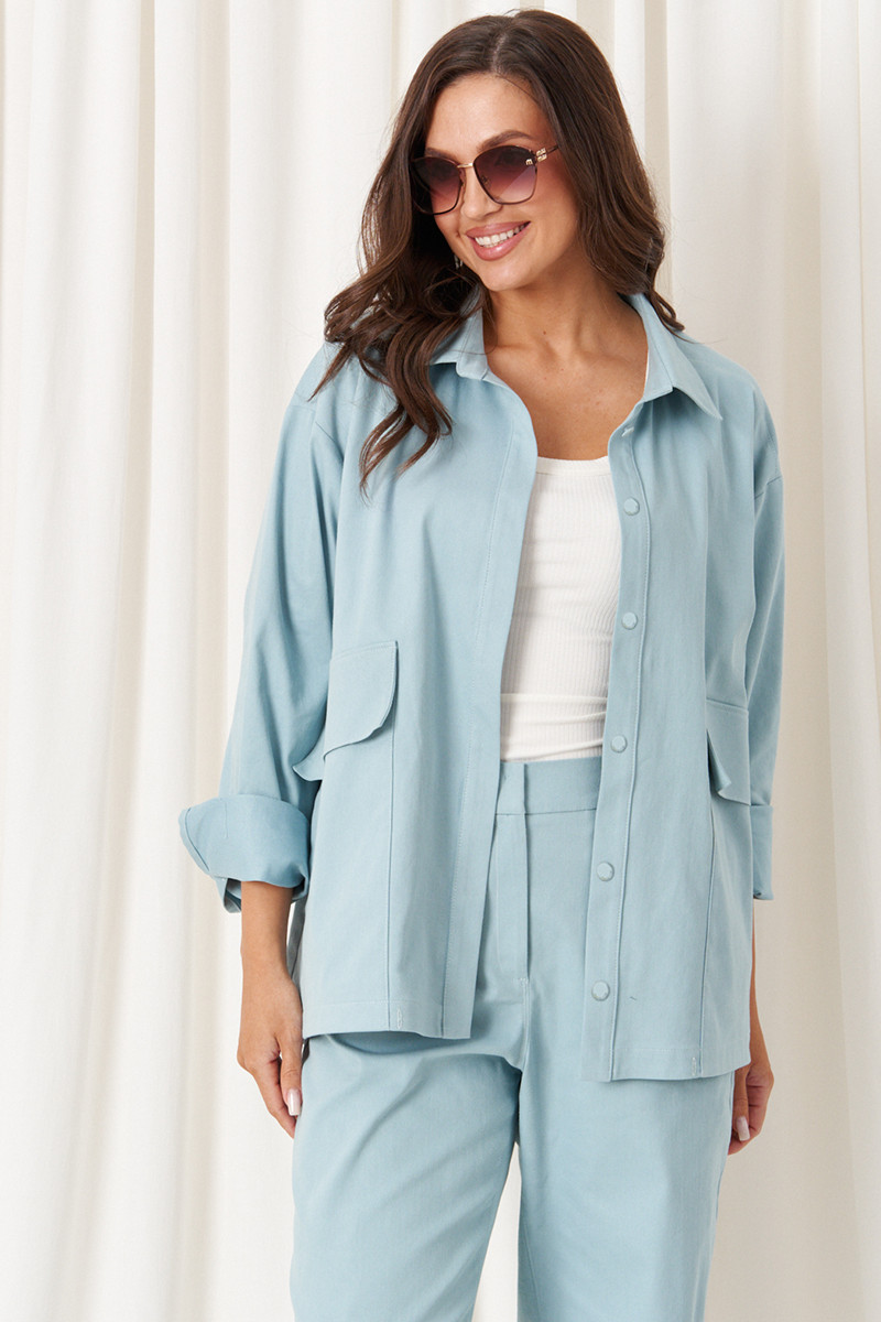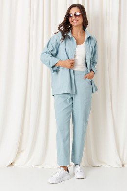 | 50 | Жакет: Длина изделия по спинке - 74,5см, Длина рукава - 55см, Ширина плеча - 19,3см, Ширина по груди - 66см, Ширина по низу - 71см, Ширина рукава вверху - 25см, Ширина рукава внизу - 13,5см; Брюки: Высота посадки - 27,8см, Длина брюк с поясом - 98см, Длина по шаговому шву - 68см, Ширина по бедрам - 56см, Ширина по низу - 19см, Ширина по талии - 41см; |