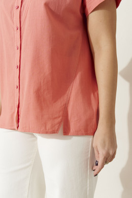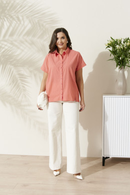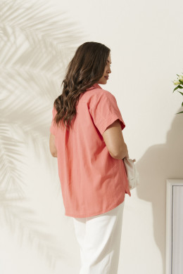 Блузка женская из натуральной хлопковой ткани — это стильный элемент гардероба для женщины, которая ценит модную, комфортную и нарядную одежду на каждый день и для особых случаев. Летний нежный коралловый цвет делает эту блузу универсальной вещью, подходящей для повседневного образа, делового стиля или праздничного мероприятия. Полуприлегающий силуэт подчеркивает фигуру, а короткий рукав с притачной отложной манжетой добавляет элегантности и удобства в носке. Воротник-стойка и застежка на пуговицы создают модный акцент и позволяют сочетать блузку как с офисными классическими брюками, так и с повседневными джинсами или юбкой.